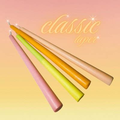 Dinner Party's Classic Taper Candles are well.. Classic. Classy, elegant, perfect for every dinner party ever on earth. From fancy dinners to at-home movie nights, the Classic Taper just really adds a good vibe. Enjoy long burn times, cool melting dripping effects, and a soothing glow.